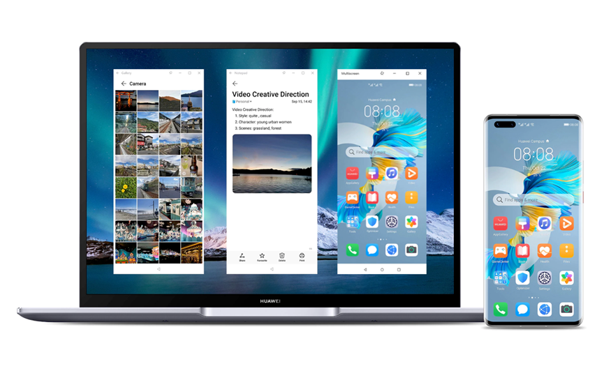 انقر بهاتفك على اللوحة اللمسية وستظهر شاشة هاتفك على الفور على شاشة HUAWEI MateBook 14 عبر خاصية Huawei Share رائع لمكالمات الفيديو، وتعدد المهام باستخدام ما يصل إلى 3 نوافذ لتطبيقات الهاتف، وعمليات نقل الملفات بسرعة بالسحب والإفلات
