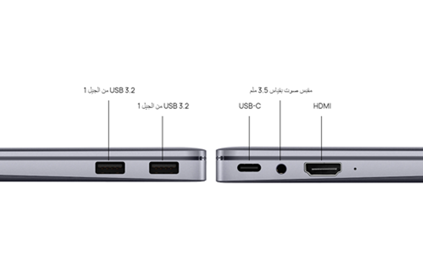 على الرغم من المظهر النحيف لجهاز HUAWEI MateBook 14، فإنه يحتوي على المنافذ التي تبحث عنها. يمكنك توصيل سماعات الأذن ومحرك الأقراص الصلبة الخارجي، وأي شيء تريده. وبفضل تقنية الشحن العكسي، يمكنك شحن هاتفك من خلال MateBook، حتى عند إيقاف تشغيله
